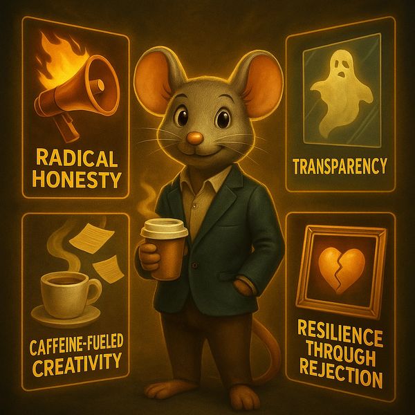 Enter Brad. Brad’s a mouse. But not just any mouse—he’s my CFO (Chief Feelings Officer), my unpaid intern, my brand mascot, and the only one in this house who hasn’t panic-applied to a logistics job in Nebraska just for the adrenaline hit of clicking “Submit.” Brad drinks more lattes than I do, has better instincts, and somehow manages to look composed while I’m stress-eating week-old muffins over another rejection. He is everything I aspire to be: calm, caffeinated, and unbothered.